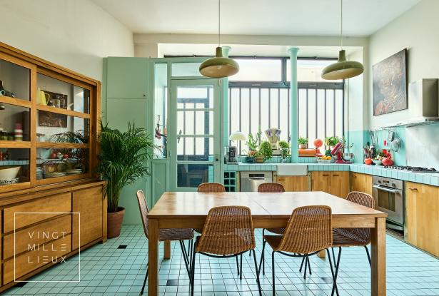 Loft original en RDC "comme une maison" (145m2 environ) avec une cour/jardin de 50m2 végétalisée dans une impasse très calme. Belle pièce à vivre de 55m2 avec verrière et belles hauteurs sous plafond; 3 chambres, 2 salles de bains. 2 bureaux (dont 1 bureau entrée, comme un jardin d'hiver). A moins de 100M du parc des Buttes Chaumont.
